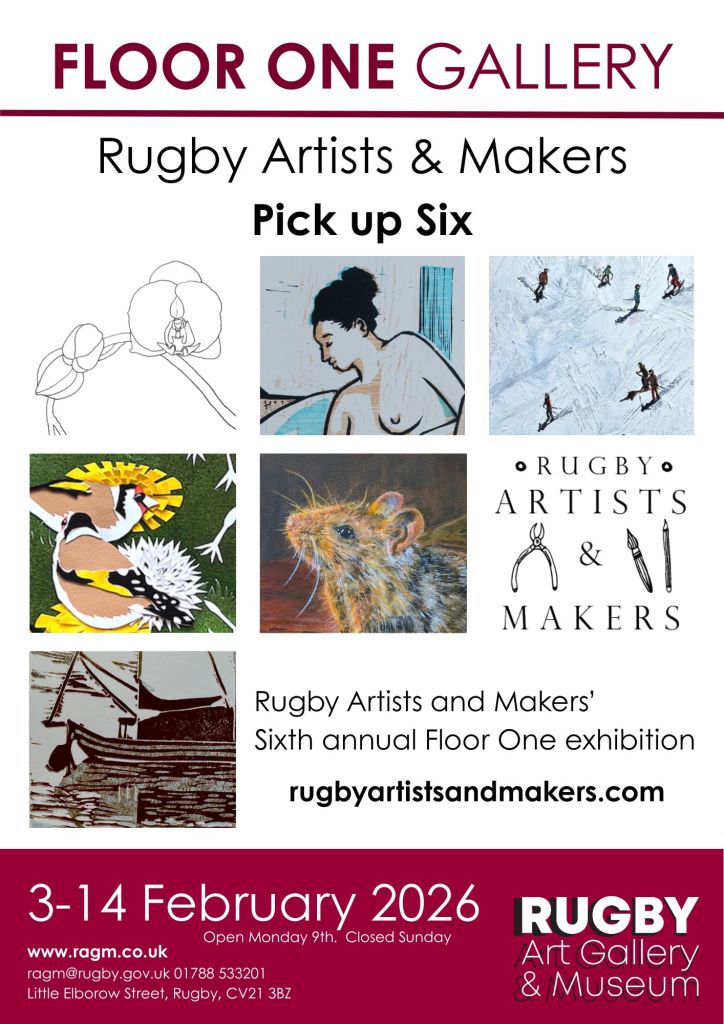 The sixth annual Rugby Artists and Makers exhibition at Floor One gallery runs from 3rd February to 14th February 2026 (closed Sunday). Over 30 local artists and makers will be exhibiting work in a wide variety of mediums. Many works are for sale (collection from the artist at the end of the exhibition) and browser works can be taken away on the day of purchase. The exhibition is stewarded by a rota of exhibitors, so there should always be an artist or two available to chat to.