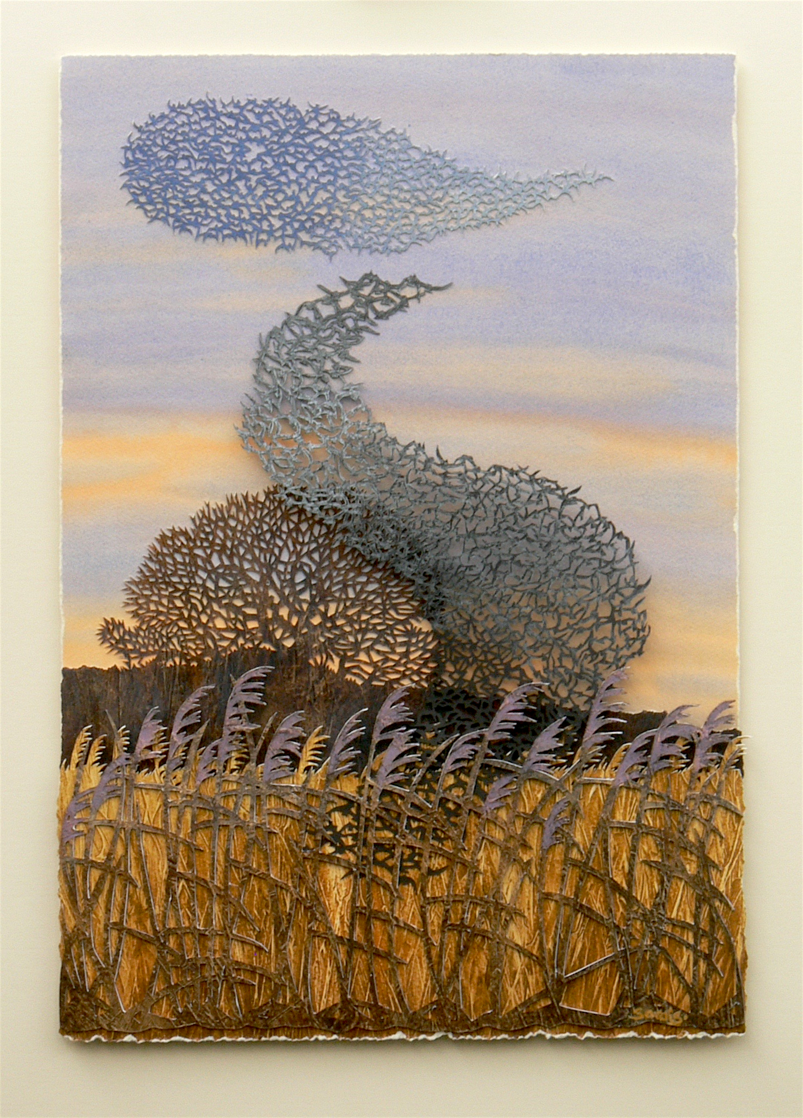 But now I have retired into printmaking. The process of printmaking is a three Act play. First designing the image, then cutting the block, finally producing the print. The gods of Chance and Intent each intervene as the story develops, and nothing is resolved until the final scene.