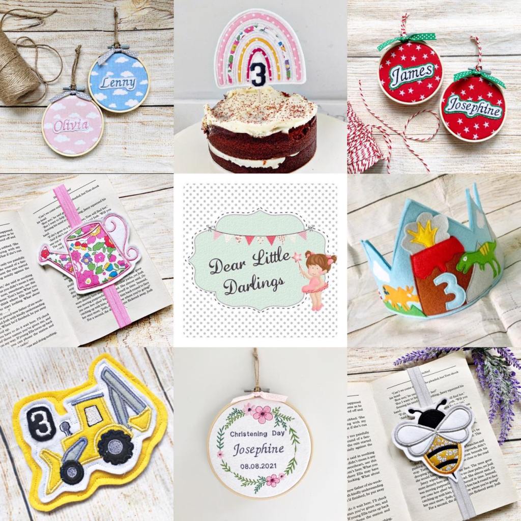 I use a combination of hand cut appliqué & machine embroidery to make my designs. I make a range of items including, birthday crowns & badges, bookmarks, cake toppers, embroidery hoops & seasonal gifts.
