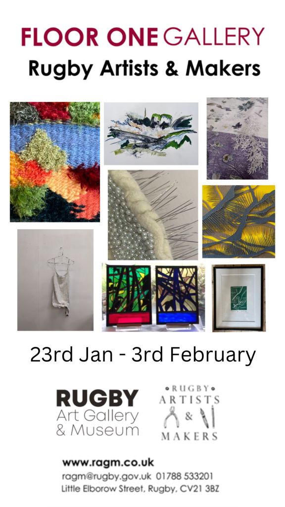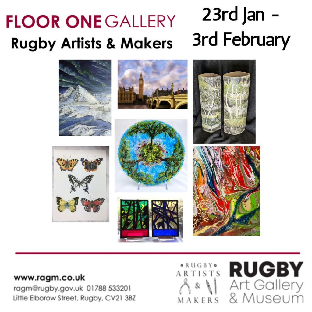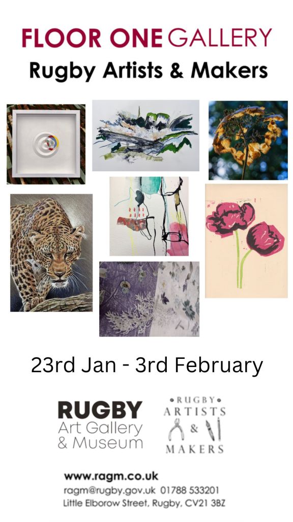 Our latest exhibition runs from 23rd January to 3rd February 2024 (closed Sundays and Monday) in Floor One gallery, Rugby Art Gallery and Museum. We are showing works by nearly 40 artists in a variety of mediums.